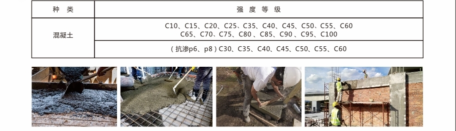 我司的目前主要研發(fā)和供應(yīng)的混凝土產(chǎn)品有:C10、C15、C20、C25、C30、C35、C40、C45、C50、C55、C60、C65、C70、 C75、C80,并成功研發(fā)出C85、C90、C95、C100超高強(qiáng)度混凝土。